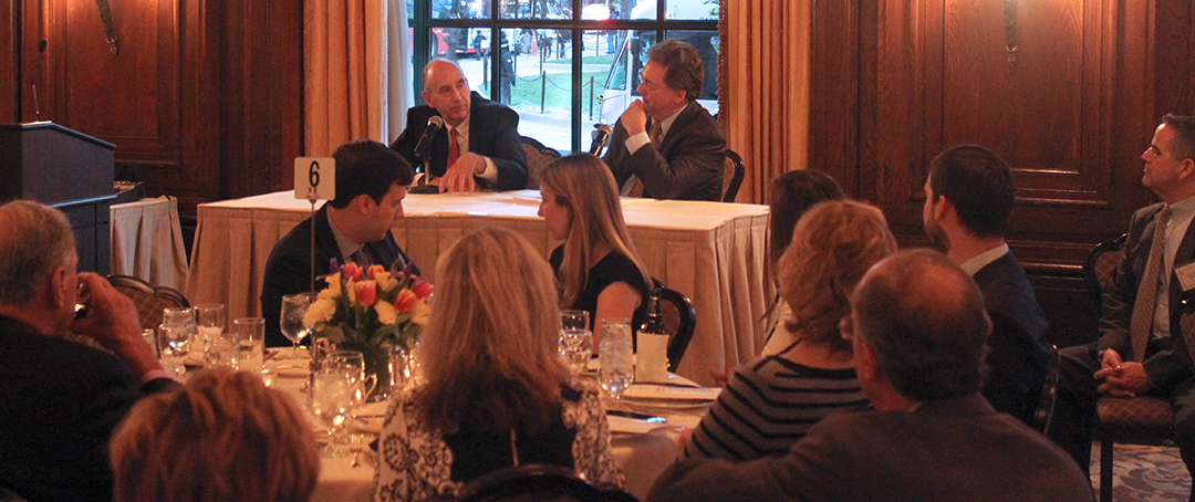 Initiated by the Law School's Board of Visitors in 2013 to honor then new dean, Daniel F. Attridge, the Dean's Dinner has become an important spring tradition at CUA Law as a means of raising scholarship support for students. This year's event was held at The Army and Navy Club in downtown Washington, D.C., where the room was at capacity to hear special guest speaker, White House Counsel W. Neil Eggleston.