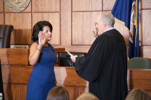 Metzler began her legal career as a law clerk to the Honorable Lon E. Farris of the Prince William Circuit Court, and it was Judge Farris who administered her oath of office (see photo above). Following her clerkship, she worked for Blankingship & Keith LLP in Manassas where she specialized in civil litigation, eminent domain and land use issues. She has also served as a guardian ad litem for children and as a circuit court conciliator. Most recently she was an associate at Compton & Duling LC.