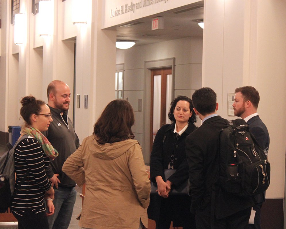 After the conclusion of the discussion, students, alumni, faculty, staff, and guests were invited to a reception in the Keelty Atrium for a chance to personally speak with the panelists.