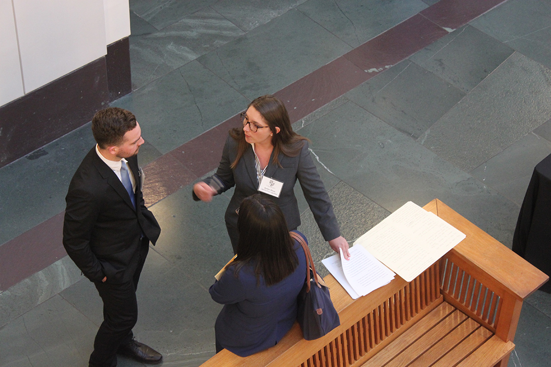 This mediation is the culmination of the semester-long first-year appellate advocacy problem. On Friday, April 13, one hundred and fifteen first-year students argued before sixty alumni and friends of The Catholic University of America Columbus School of Law, who volunteered to provide oral and written critiques of their advocacy.