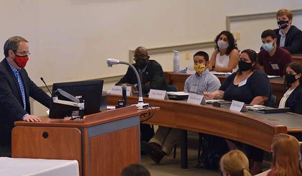 Day two provided additional opportunities for both day and evening division students to acquaint themselves with the Catholic Law community and the expectations of law school. In morning and evening sessions, students received an introduction to Court Structure and Stare Decisis, learned case briefing with Professor Sarah H. Duggin, and discussed “How to Succeed in Law School” from the student perspective.