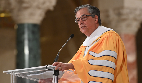 In his address, Stephen C. Payne, Dean and Knights of Columbus Professor of Law, congratulated graduates of Class of 2023 for their steadfast commitment to beginning—or, in the case of evening students, continuing—their legal studies in the opening throes of the COVID-19 pandemic. He added that, while the first classes of their law school experience utilized technology to meet remotely, these graduates were receiving their degrees amid the eye-catching advent of artificial intelligence. Yet Dean Payne advised that they enter the legal profession without fear of modern, fashionable systems like ChatGPT; for although it could regurgitate chiseled, unalterable facts, it could never provide the individual care that recognizes the whole person and which forms one of the good lawyer’s signature virtues. “Please remember that it makes all the difference to keep the real, whole person at the center of your life and practice,” he said in earnest. “We’ve tried to do that with you in your legal education through tough times, and we’re confident that, upon entering the legal profession, you will all continue to make us proud.”