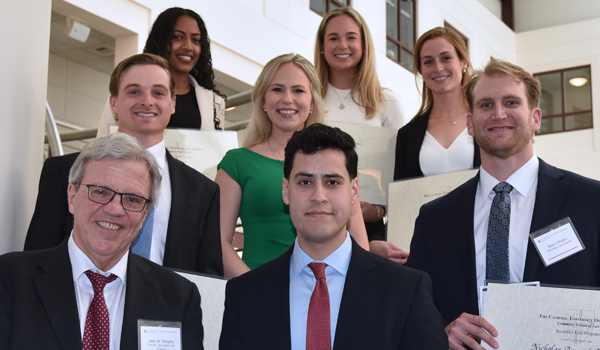 Dean Stephen Payne welcomed students, faculty, staff, and guests. After the Dean’s opening remarks, the directors from each program spoke with pride about this year’s graduating class. On behalf of Professor Susanna Fischer, Director of CILI, Professor Megan M. La Belle, Senior Associate Dean for Academic Affairs, presented the certificates to this year’s CILI graduates. Brian Svoboda, Director of LPP, followed and noted that Catholic Law is uniquely positioned to offer a certificate in public policy — not only because of its location in the nation's capital but also because of its mission of service. Svoboda also presented Whitlee Dean and Peter Gregory with the Dulin Haynes Fellowship for their dedication to public service.